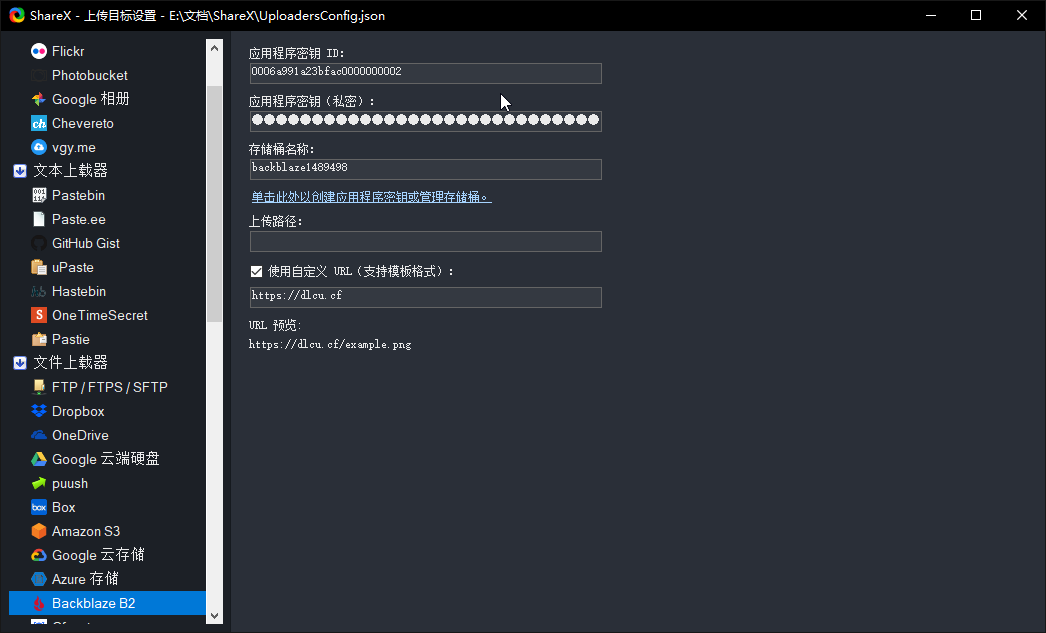这个感觉没啥好说的,主页面–目标–上传目标设置–backblaze b2,填上就行了